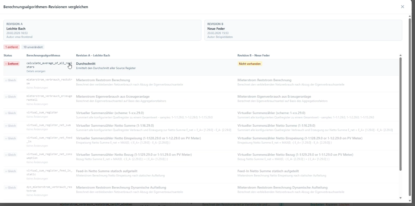 - automatisierter Vergleich von neuen und vorhandenen Berechnungsformeln